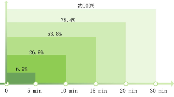기존 배터리의 에너지 밀도를 바탕으로 항속거리를 높이려면 배터리 용량을 늘리는 것이 가장 직접적이고 효과적인 방법이 된다.그러나 배터리 용량이 클수록 충전 시간이 길어진다는 것을 의미하며, 충전 효율을 어떻게 향상시킬 것인가는 기술 난관 돌파의 초점이다.소비자들이 밖에서 빠른 충전 시간을 기대하는 경향 통계에 따르면 거의 모든 사람이 30분 이상, 78.4% 가 20분 이내, 53.8% 가 15분 이상, 26.9% 가 10분 이내, 6.9% 가 5분 이내를 희망하는 것으로 집계됐다.