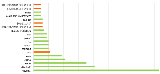 특허 출원인별로 보면 토요타, 미투비시 및 혼다 및 NISSAN의 출원 건수가 4위권에 들었다.일찍 2011년에 토요타, 미트슈비시, 혼다 등 자동차기업을 포함한 9개 일본기업이 협의를 달성하여 일본에 공동으로 일체화조직을 설립하고 전기자동차쾌속충전네트워크체계를 구축하여 전기자동차보급을 추진했으며 현재 테스라는 여러 지역에 슈퍼충전소를 건립하여 슈퍼충전소 쾌속충전의 대표로 되였다.