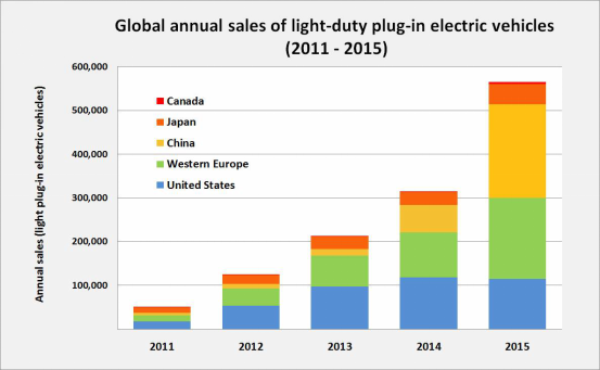 그림 1 전기 자동차 2011-2015년 전 세계 판매량