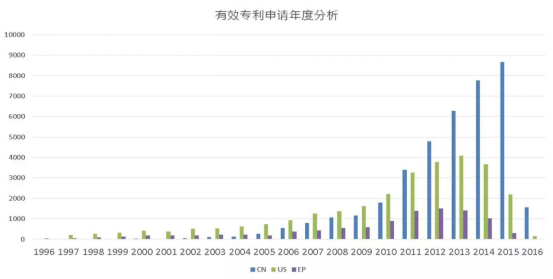유효 특허 중 주요 위험 소재지인 중국, 미국, 유럽의 유효 특허는 주로 최근 몇 년 동안 집중되어 있다. 이는 각국이 이미 전기 자동차 시장 발전의 전망을 의식하고 잇달아 특허를 배치하고 있음을 설명한다. 그 중에서 중국의 유효 특허가 현저히 증가하고 지속적으로 증가하는 상태에 처해 있다. 그 중에서 유효한 발명 특허 중 해외 출원인 비중이 절반을 차지하고 중국 지역의 제조, 판매 등 행위는 해외 권리자의 위험이 비교적 크다. 중국 기업은 특허 배치와 위험을 더욱 강화해야 한다.