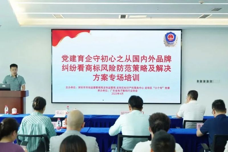 4월 27일, 사이언배길그룹은 시시장감독관리국 룡화감독관리국 룡화구지적재산권서비스센터가 주최하고 광동성전자디지털업종협회가 협찬한”당건설육성기업이 초심을 지키고 국내외 브랜드분쟁에서 본 상표위험방비책략 및 해결방안 전문훈련”에 초청되였다.